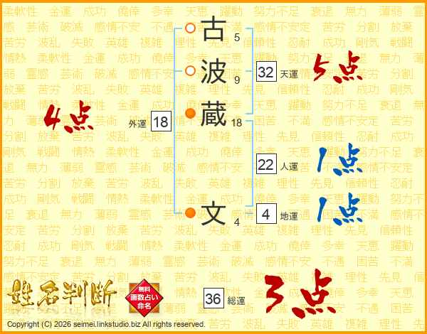 古波蔵文さんの総運は36画の3点!