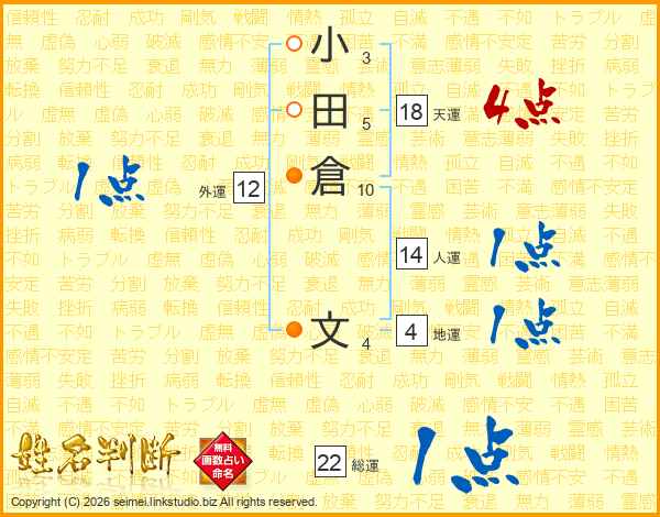 小田倉文さんの天運は18画の4点!
