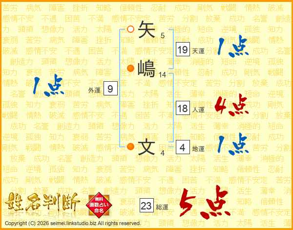 矢嶋文さんの総運は23画の5点!