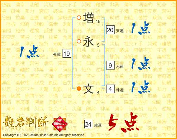 増(15画)永(5画) 文(4画)