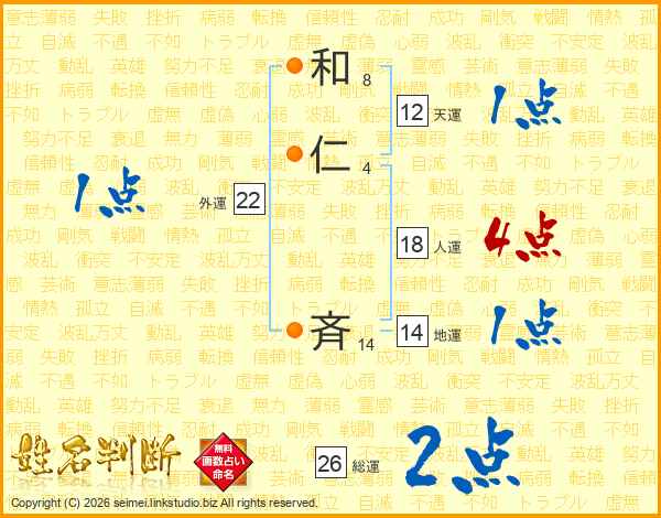 和仁斉さんの総運は26画の2点!