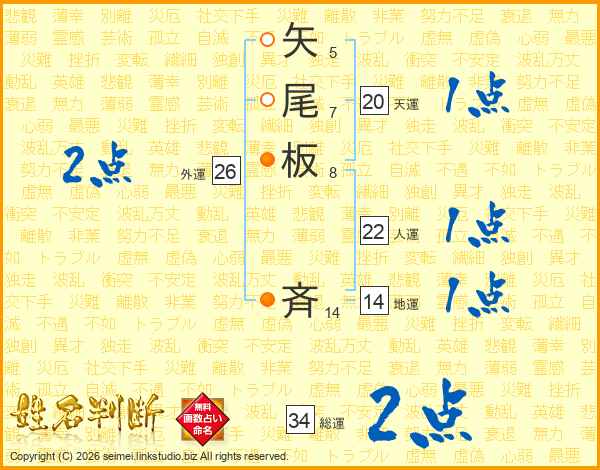 矢(5画)尾(7画)板(8画) 斉(14画)