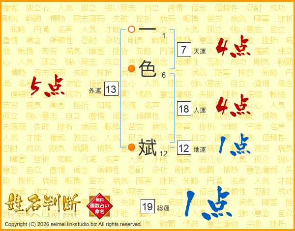 一色斌さんの天運は7画の4点!