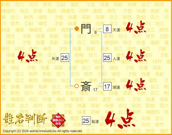 門斎さんの総運は25画の4点!