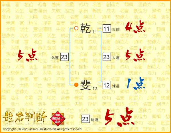 乾斐さんの総運は23画の5点!