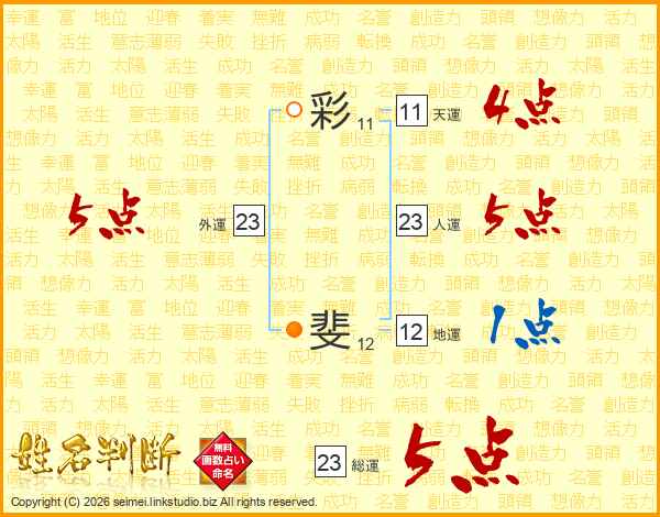 彩斐さんの総運は23画の5点!