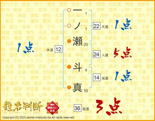 一ノ瀬斗真さんの人運は24画の5点!