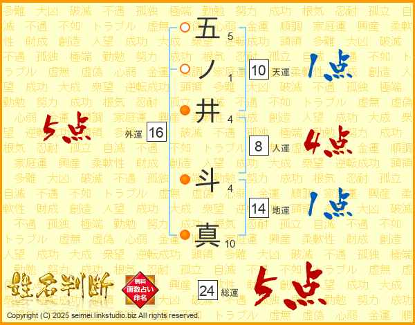 五(5画)ノ(1画)井(4画) 斗(4画)真(10画)