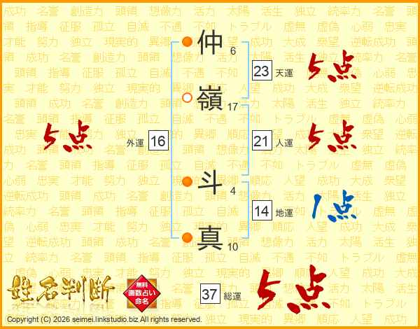 仲嶺斗真さんの天運は23画の5点!