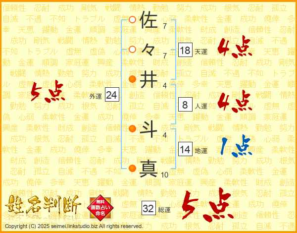 佐々井斗真さんの総運は32画の5点!
