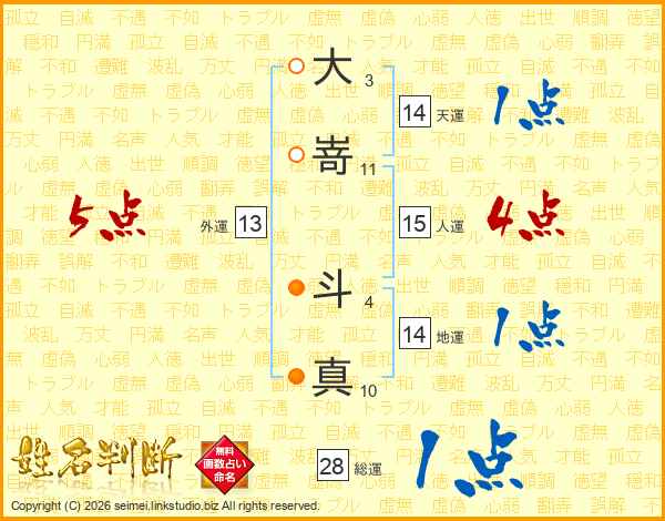 大(3画)嵜(11画) 斗(4画)真(10画)