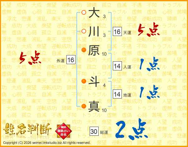 大川原斗真さんの天運は16画の5点!