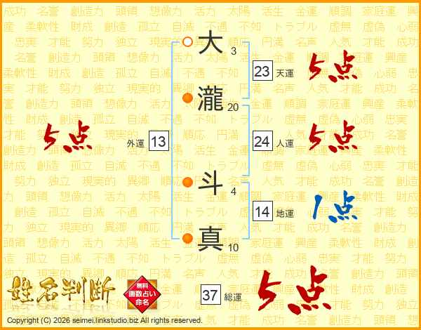 大(3画)瀧(20画) 斗(4画)真(10画)