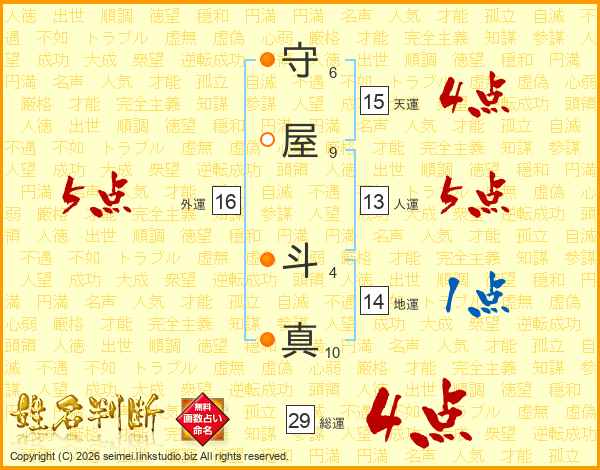 守屋斗真さんの総運は29画の4点!