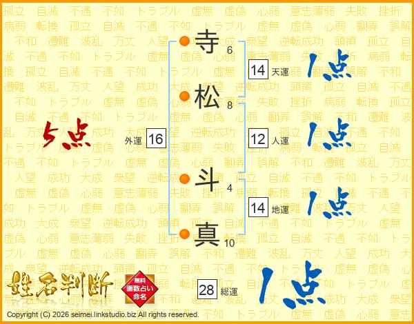 寺松斗真さんの天運は14画の1点!