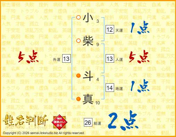 小柴斗真さんの総運は26画の2点!