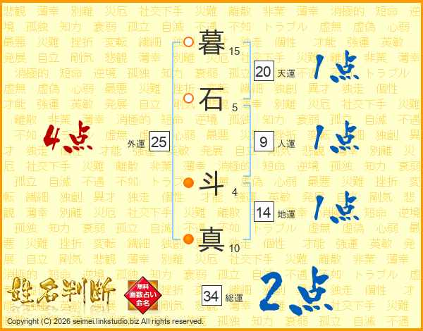 暮石斗真さんの総運は34画の2点!