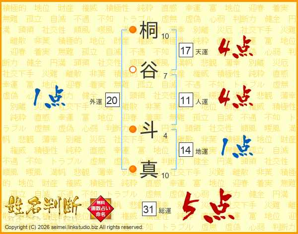 桐谷斗真さんの総運は31画の5点!