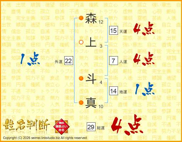 森上斗真さんの総運は29画の4点!