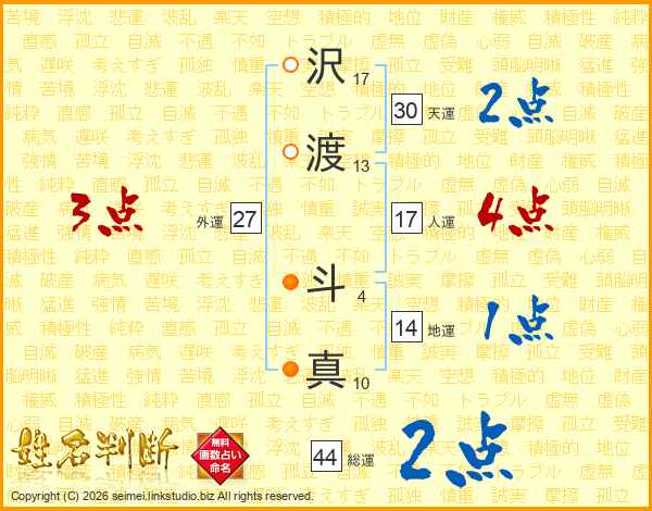 沢渡斗真さんの人運は17画の4点!