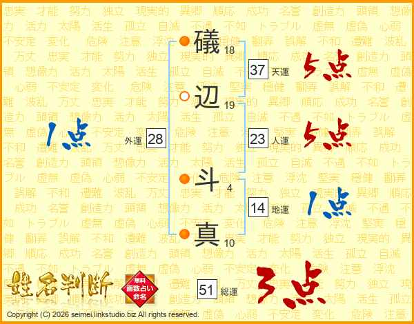 礒(18画)辺(19画) 斗(4画)真(10画)