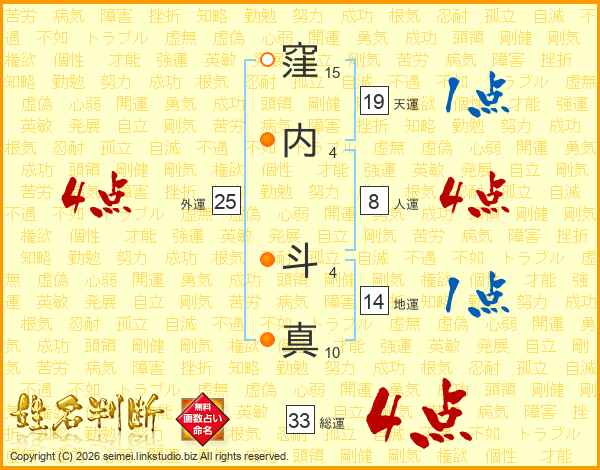 窪内斗真さんの総運は33画の4点!