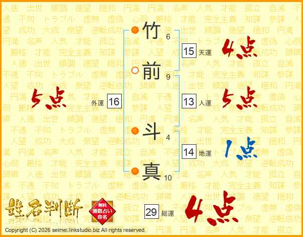 竹前斗真さんの総運は29画の4点!