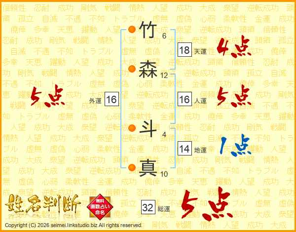 竹森斗真さんの外運は16画の5点!