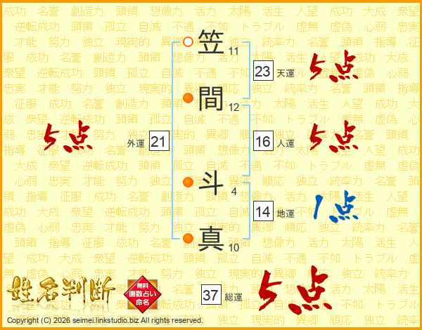 笠間斗真さんの総運は37画の5点!