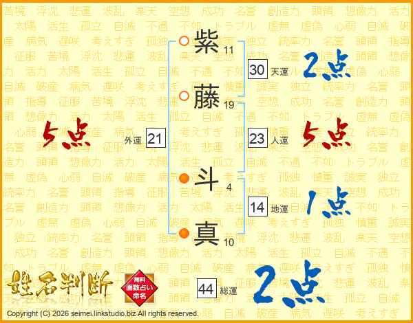 紫藤斗真さんの総運は44画の2点!