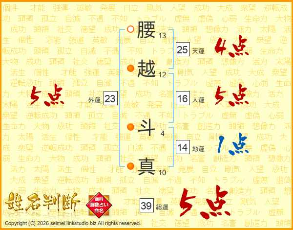 腰越斗真さんの総運は39画の5点!