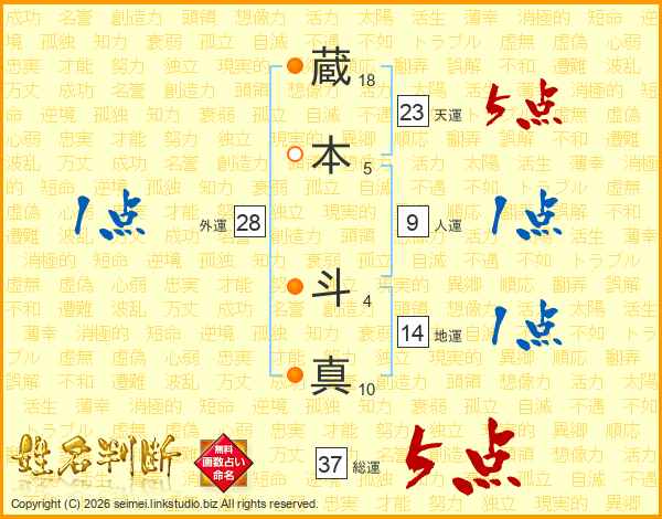 蔵(18画)本(5画) 斗(4画)真(10画)