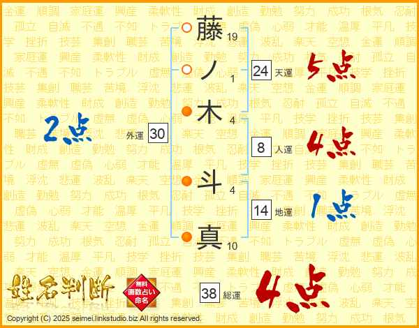 藤(19画)ノ(1画)木(4画) 斗(4画)真(10画)