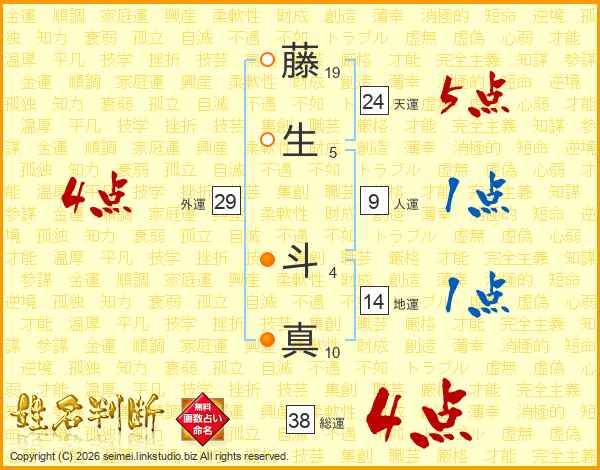 藤生斗真さんの外運は29画の4点!
