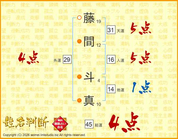 藤間斗真さんの総運は45画の4点!