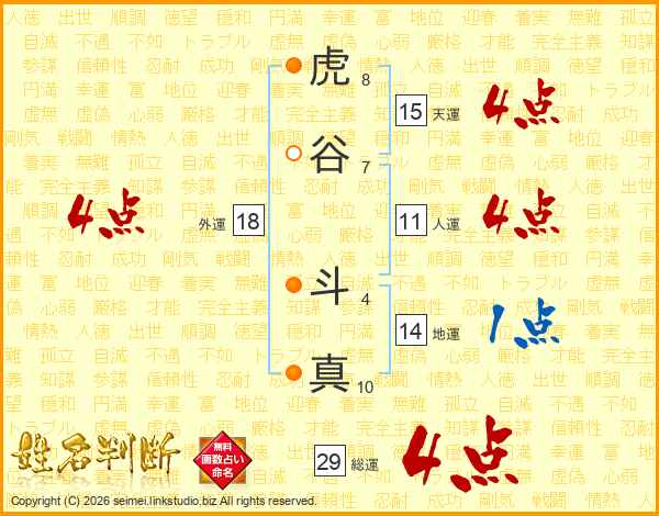 虎谷斗真さんの総運は29画の4点!