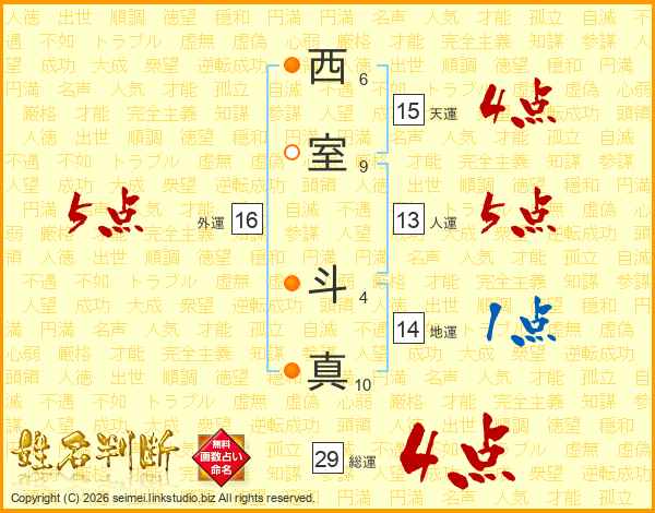 西室斗真さんの総運は29画の4点!