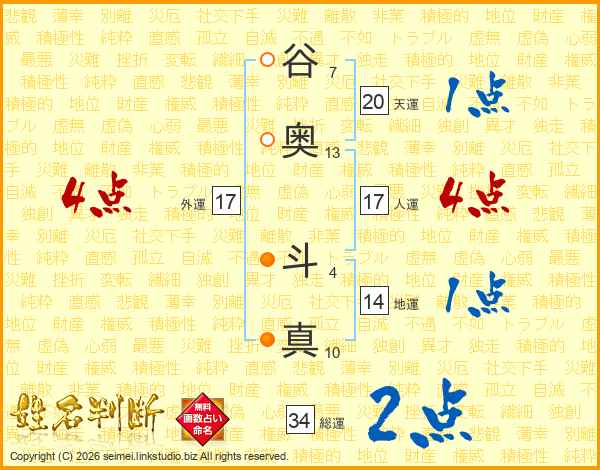 谷奥斗真さんの総運は34画の2点!