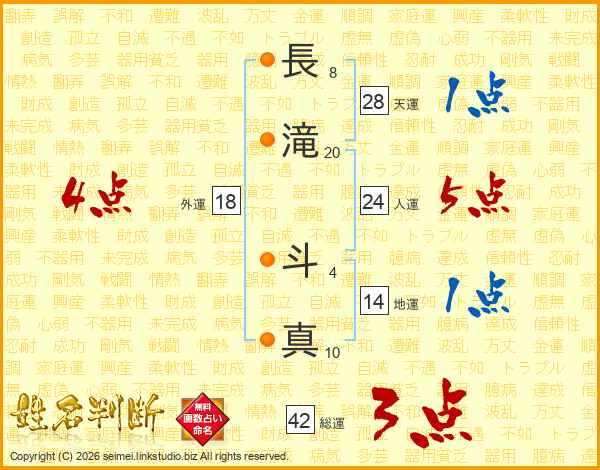 長滝斗真さんの総運は42画の3点!