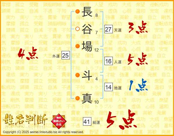 長谷場斗真さんの総運は41画の5点!