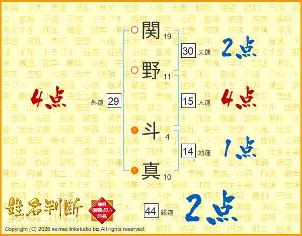 関野斗真さんの総運は44画の2点!