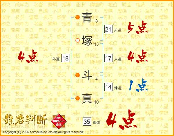 青塚斗真さんの総運は35画の4点!