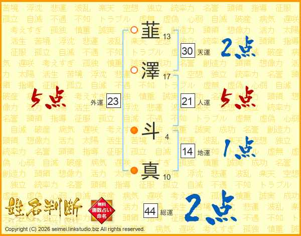 韮(13画)澤(17画) 斗(4画)真(10画)