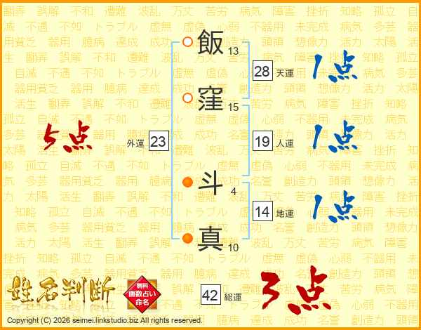飯(13画)窪(15画) 斗(4画)真(10画)
