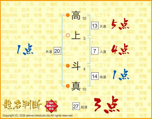 高上斗真さんの天運は13画の5点!