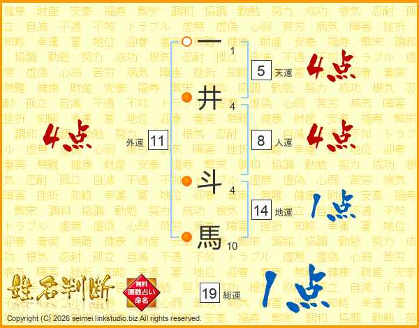 一井斗馬さんの総運は19画の1点!