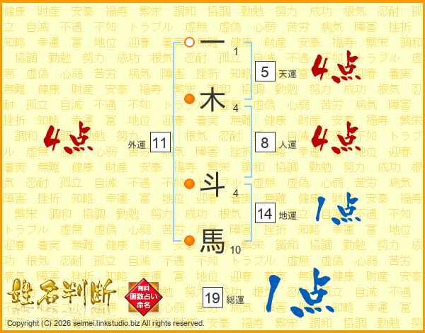 一木斗馬さんの総運は19画の1点!