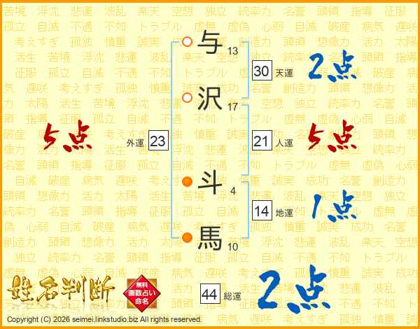 与沢斗馬さんの天運は30画の2点!