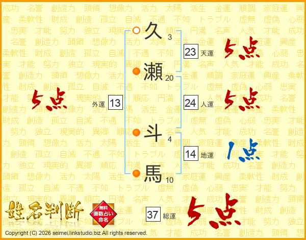 久(3画)瀬(20画) 斗(4画)馬(10画)