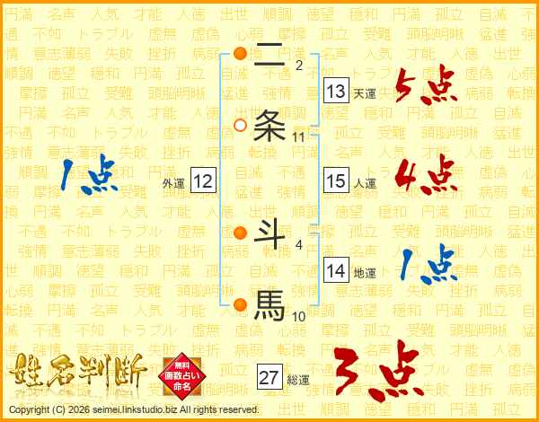 二条斗馬さんの総運は27画の3点!